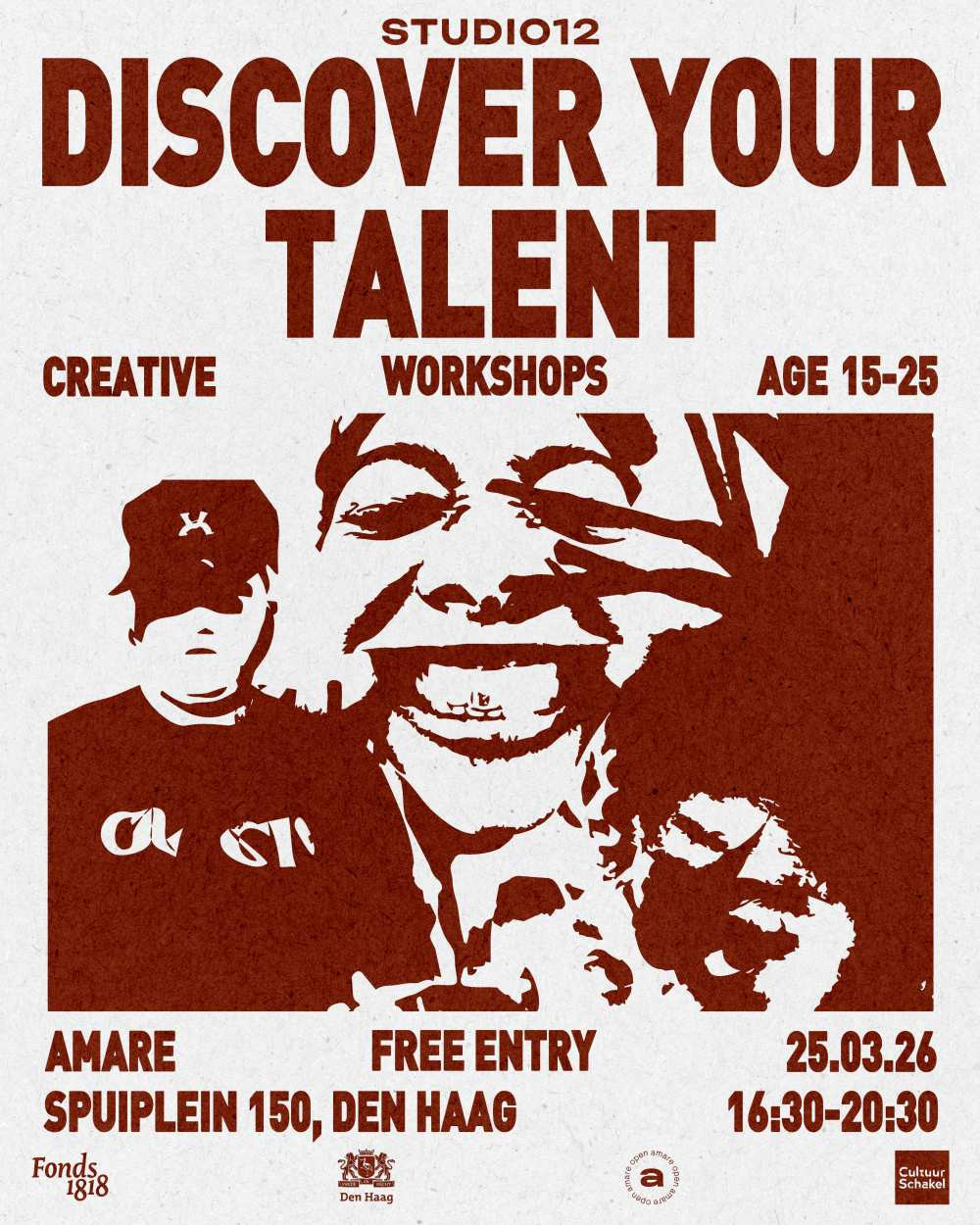 Niet iedere jongere krijgt vanzelf de ruimte om talent te ontdekken. Met het gratis jongerenevent Discover Your Talent wil Studio12 daar verandering in brengen. Op woensdag 25 maart komen in Amare in Den Haag jongeren van 15 tot 25 jaar samen voor een avond vol kunst, muziek, workshops, talks en inspiratie.