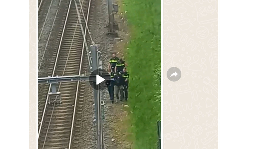 De politie nam in ieder geval geen enkel risico en ging met vier agenten het spoor om de (jonge)man mee te nemen. Op diverse sociale media kanalen is een video van de aanhouding te zien.