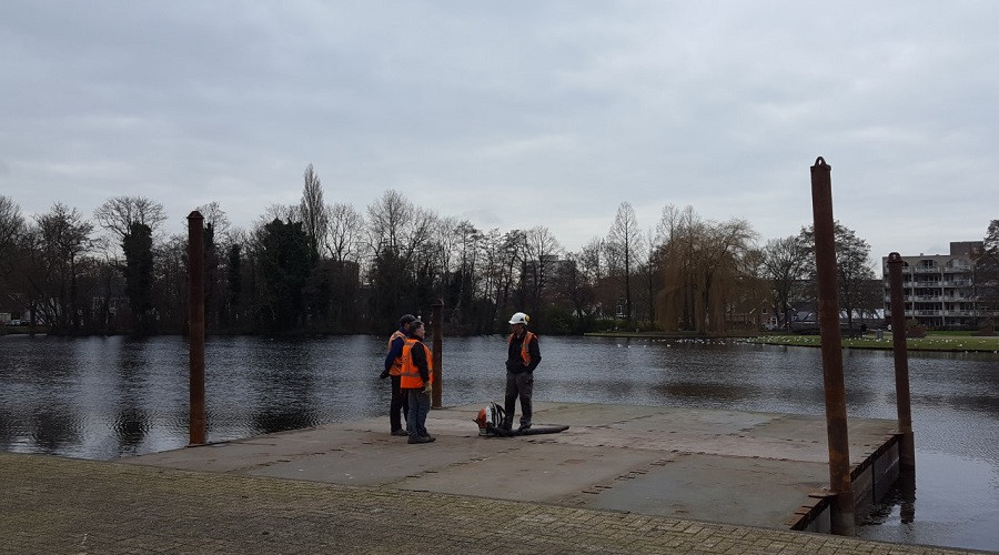 Ook werd er, door een ander bedrijf, een ponton (drijvend platform) aangelegd in het water. De acht medewerkers van Glijnis zijn ongeveer een halve werkdag bezig geweest met de 'operatie', zo liet één van de medewerkers weten aan www.zoetermeersdagblad.nl.