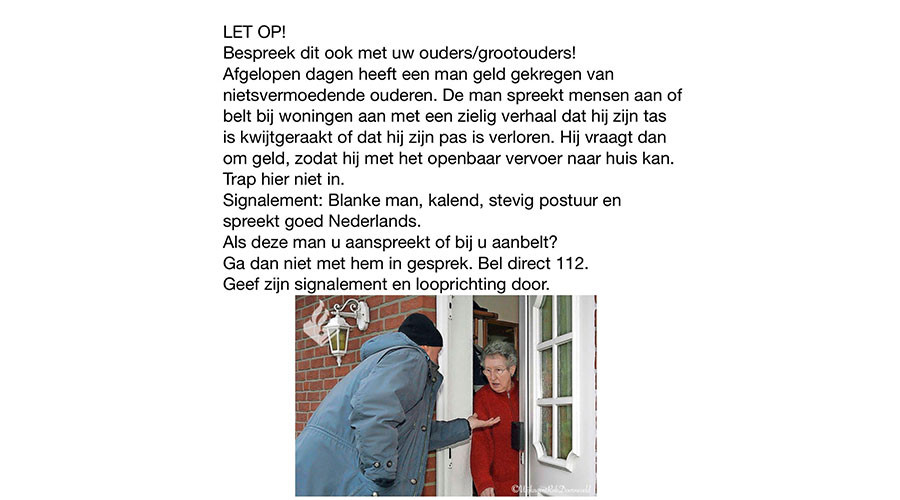 Onderstaand bericht wordt dan ook via de diverse kanalen verspreid.