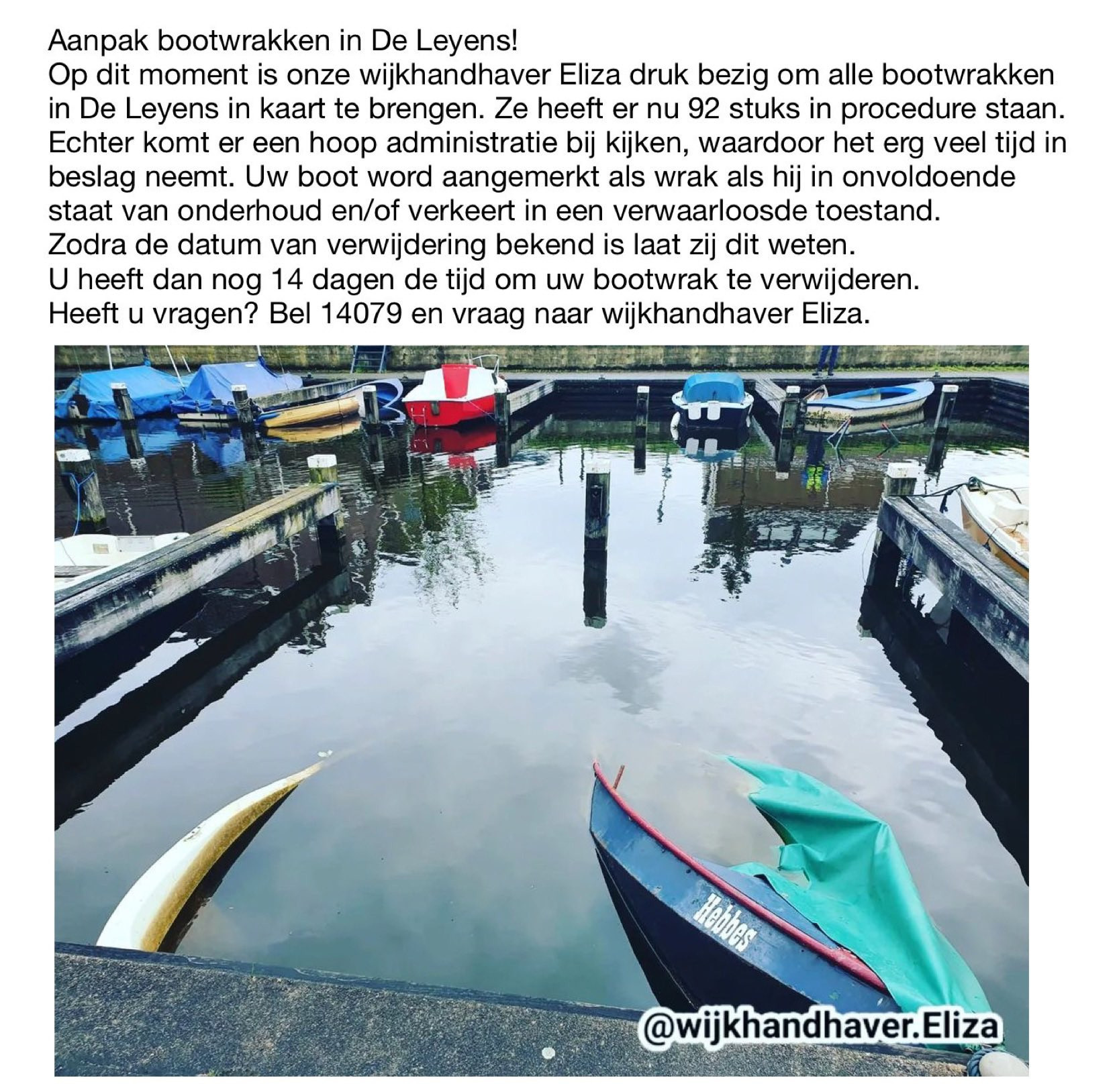 Op dit moment is de politie samen met wijkhandhaving bezig om in de Zoetermeerse wijk De Leyens alle bootwrakken in kaart te brengen.