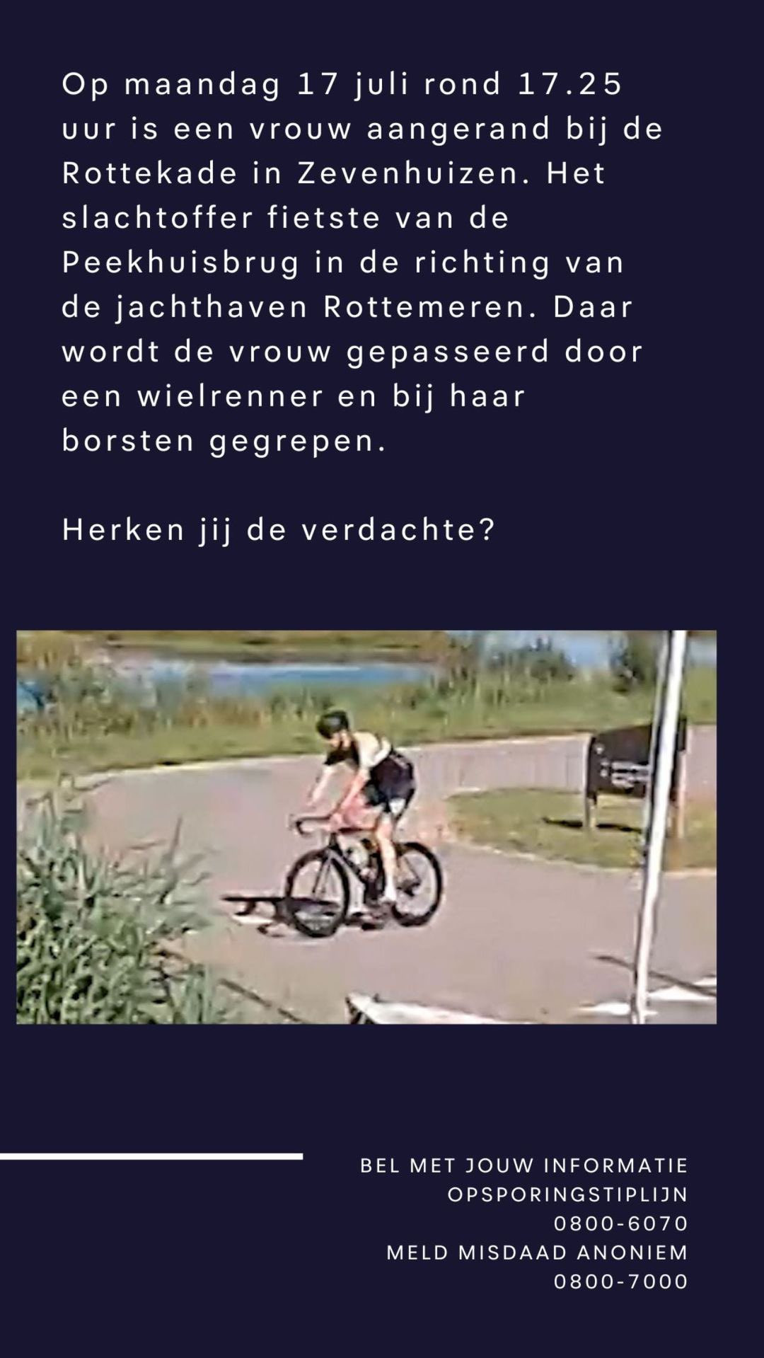 Politie Zoetermeer vestigt de aandacht op een wielrenner die verdachte is van een aanranding in het nabije gelegen Zevenhuizen.